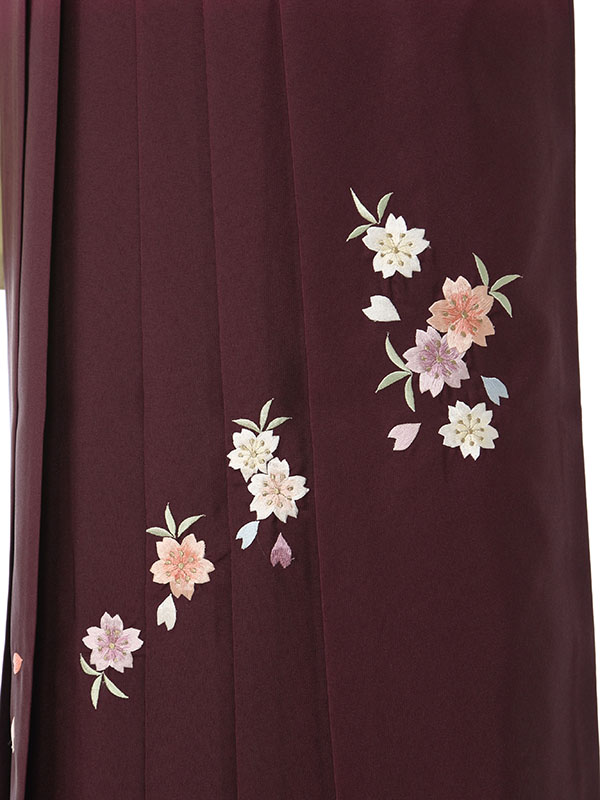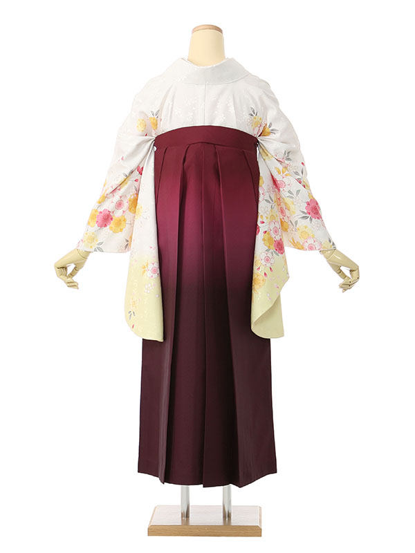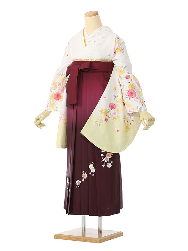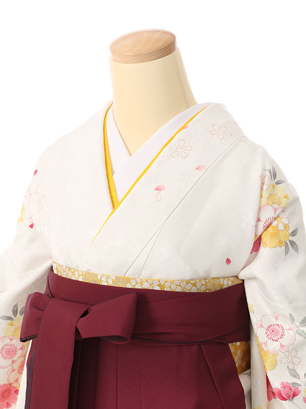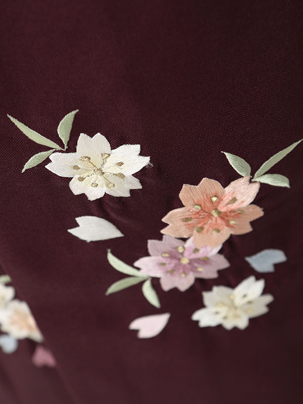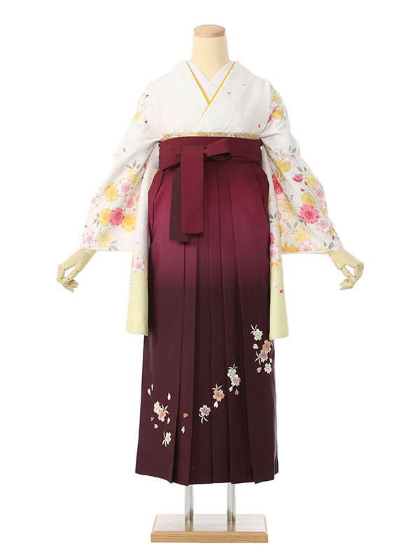 色/柄 着物:白地 桜文様 袴:ワインぼかし袴 桜刺繍