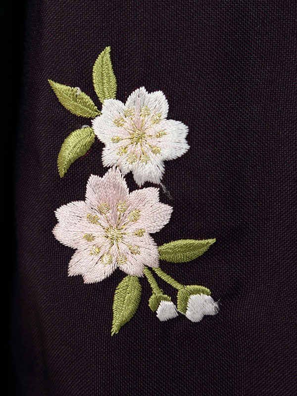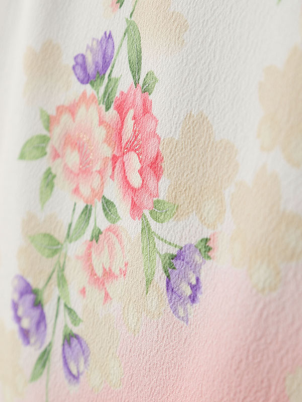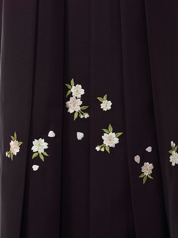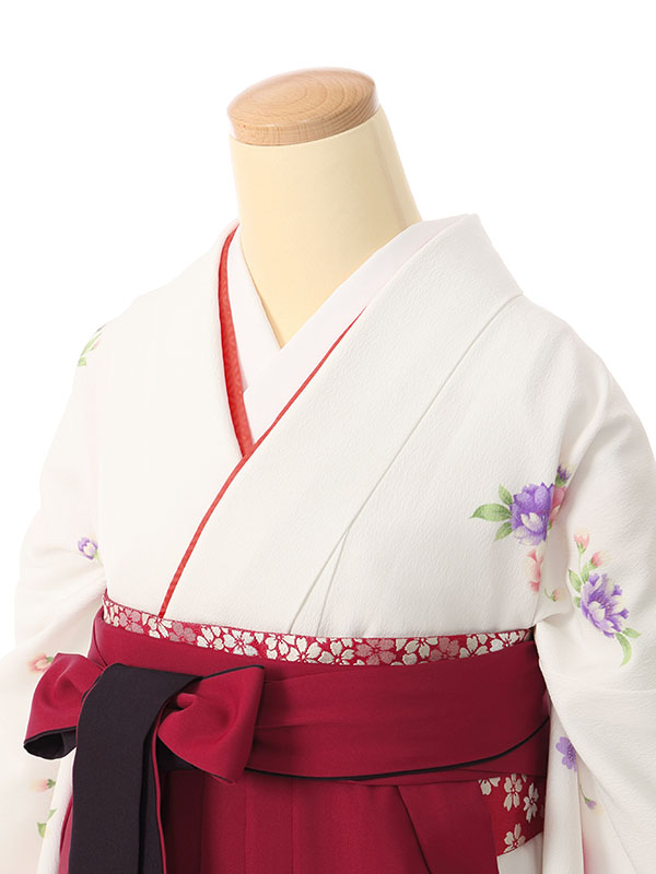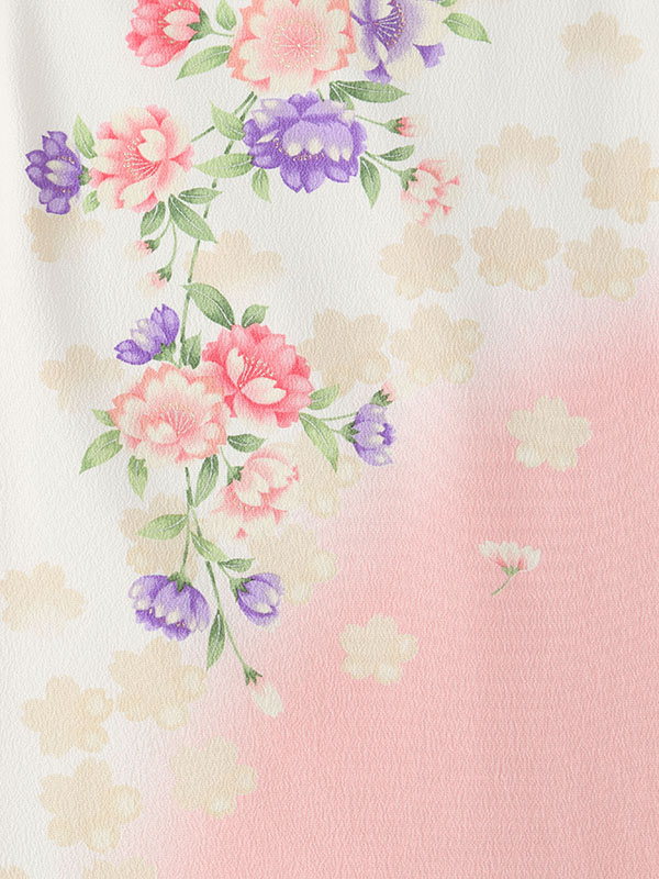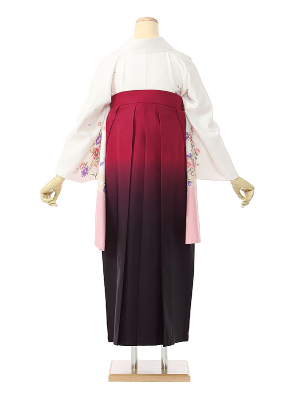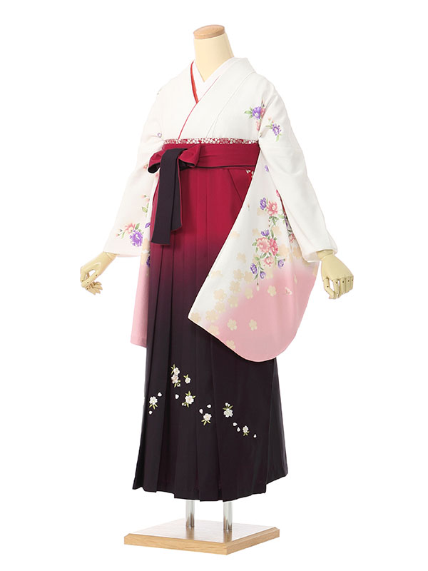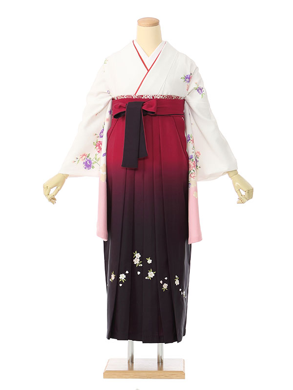 着物: 白地 ピンクぼかし桜 小花 袴: 赤紫地 紫ぼかし袴 桜刺繍