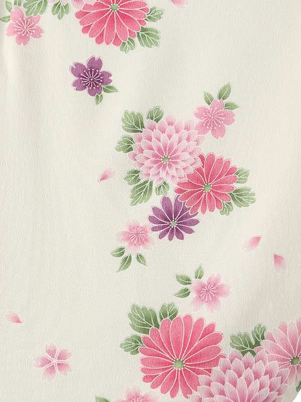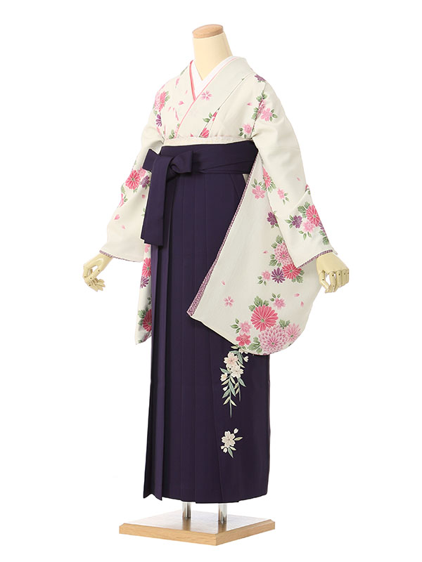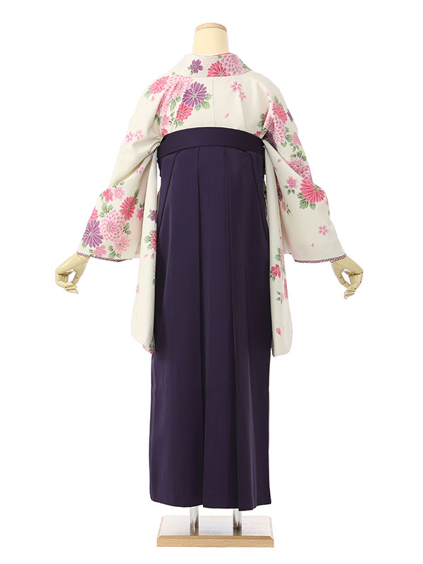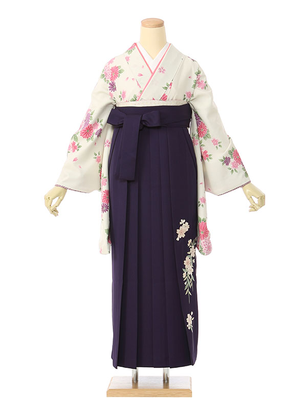 着物: クリーム地ピンク紫菊全体柄 袴: 紫袴しだれ桜