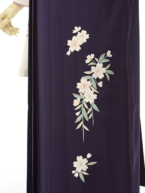 白地に上品な花柄でキレイめレディを演出!濃い紫の袴にワンポイントの刺繍が入っていて豪華です☆R1056_H30-25-2