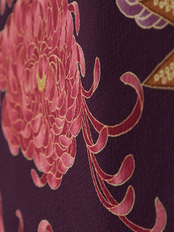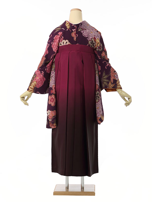 色/柄 着物:紫地 ちりめん調 松竹梅 袴:ワインぼかし袴