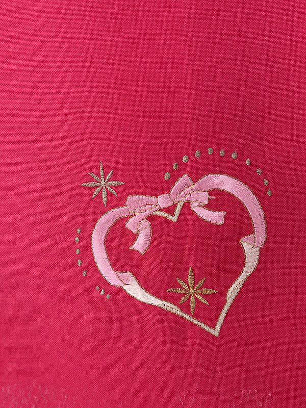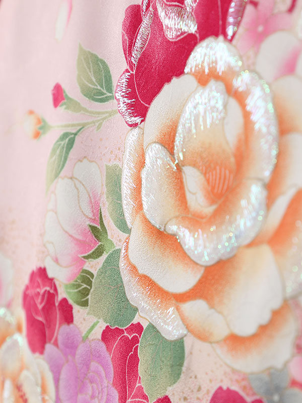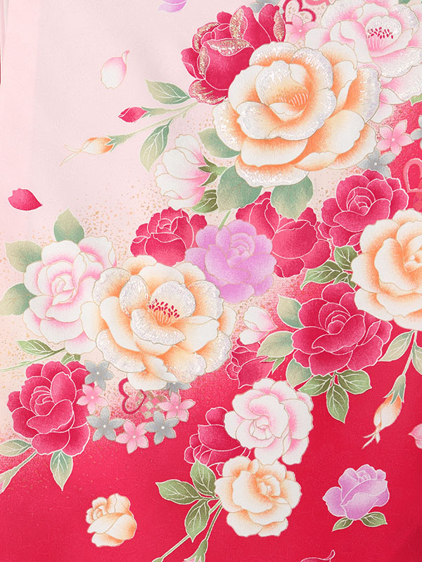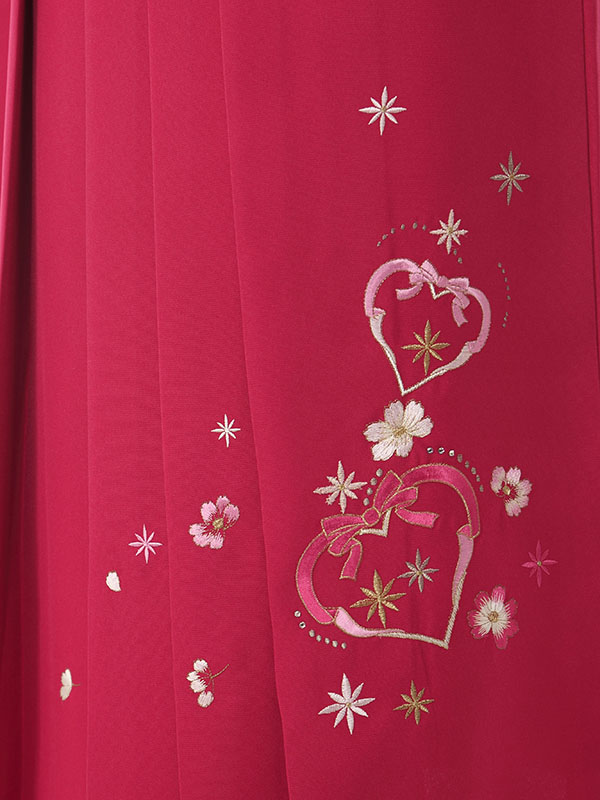 着物: ピンク地袖下赤バラ花 袴: ローズピンクぼかし袴ハート刺繍アンアン
