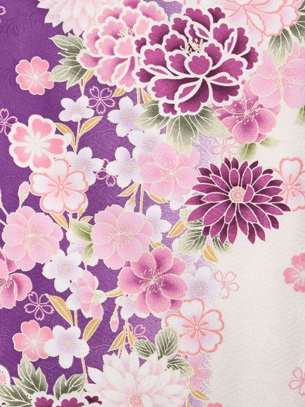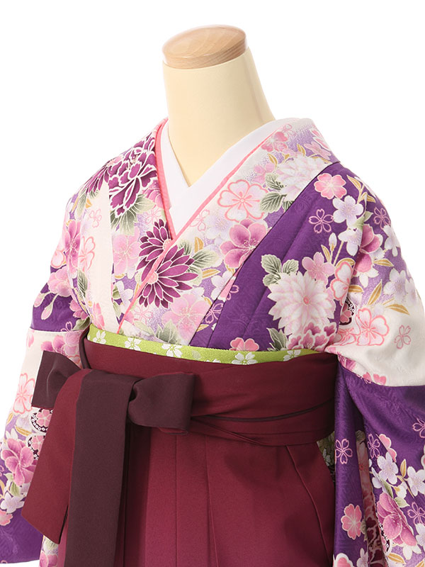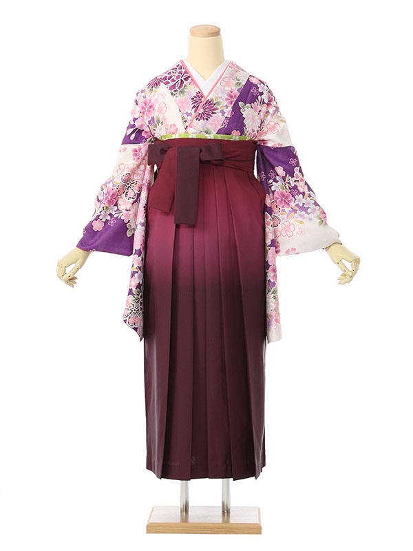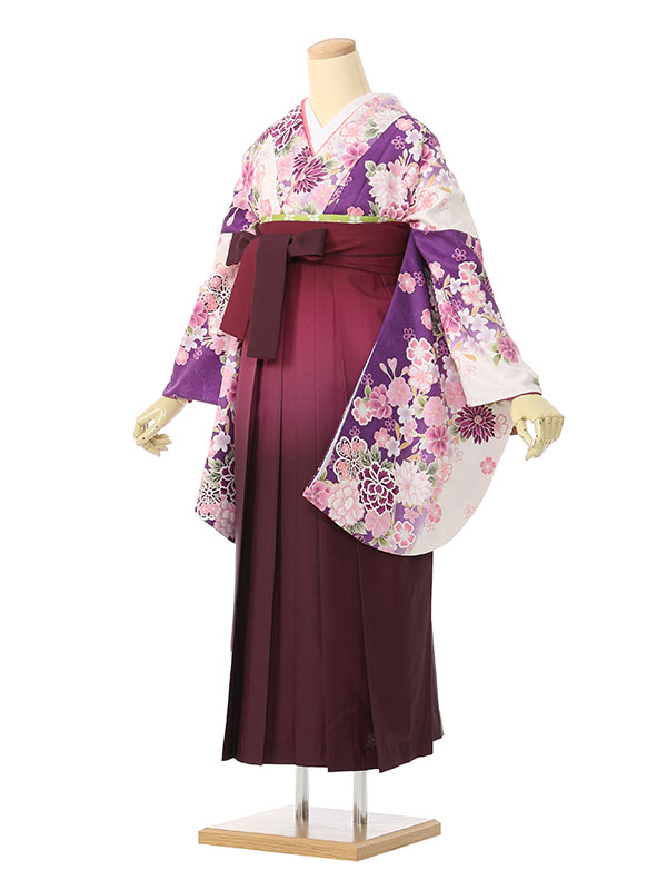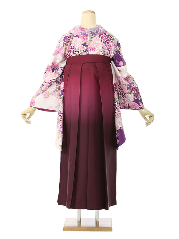 着物:紫地 白ぼかし 桜菊 牡丹に華紋 袴:ワインぼかし袴