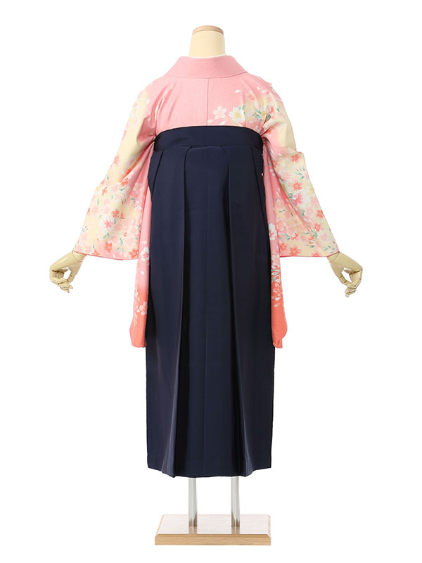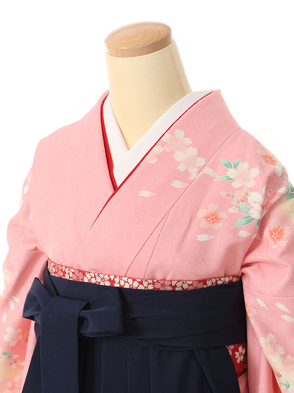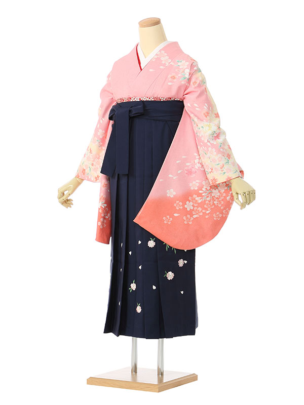 色/柄 着物:ピンク地 桜文様 袴:紺袴 桜刺繍