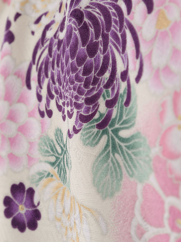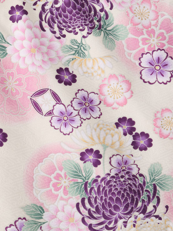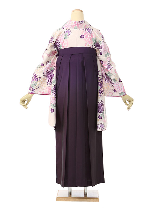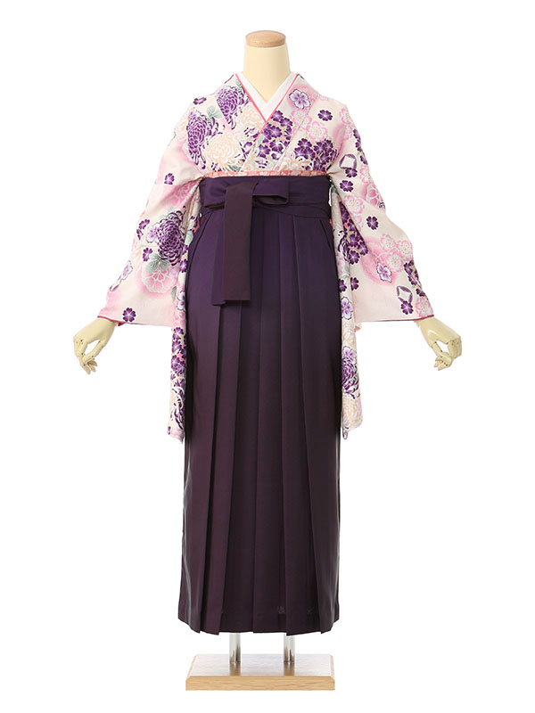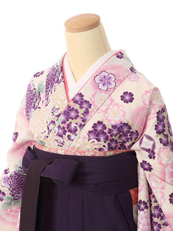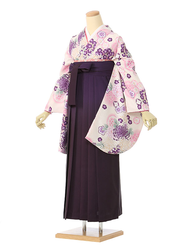 着物:薄ピンク地 桜菊 百花に吉祥文様 袴:紫ぼかし袴
