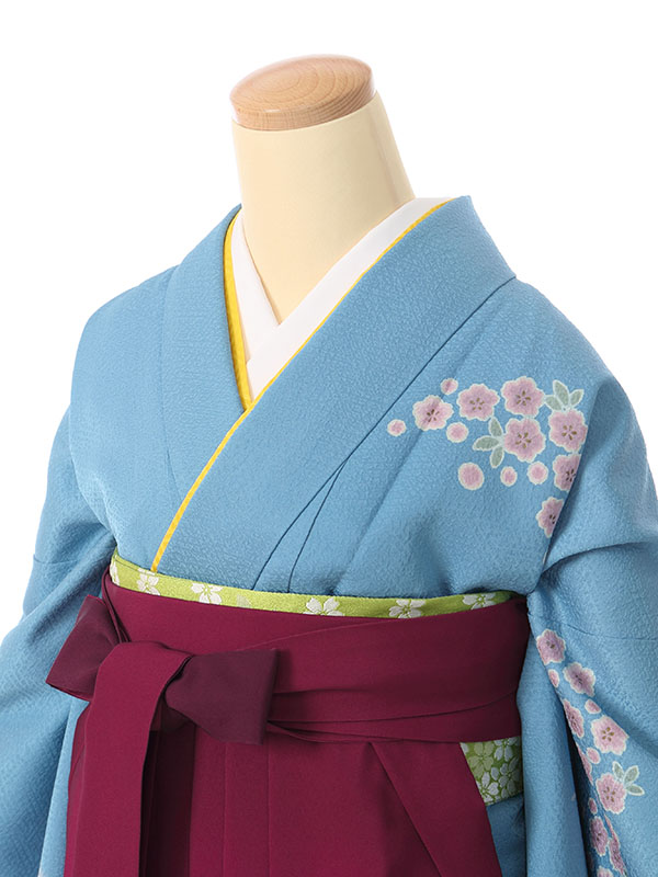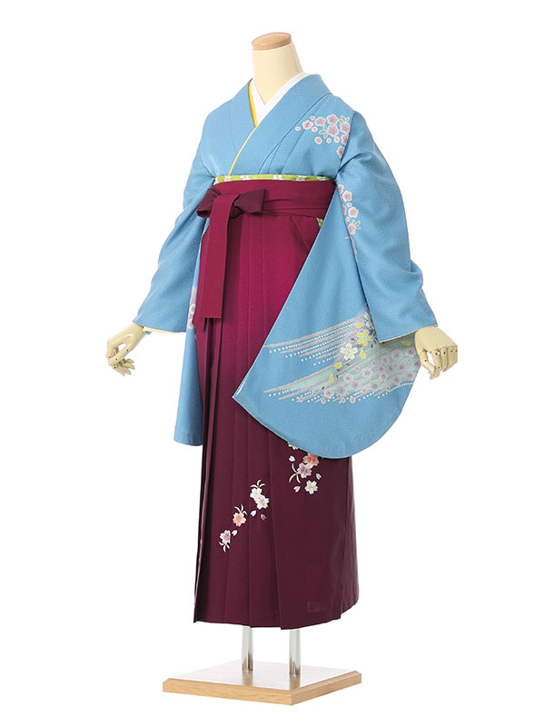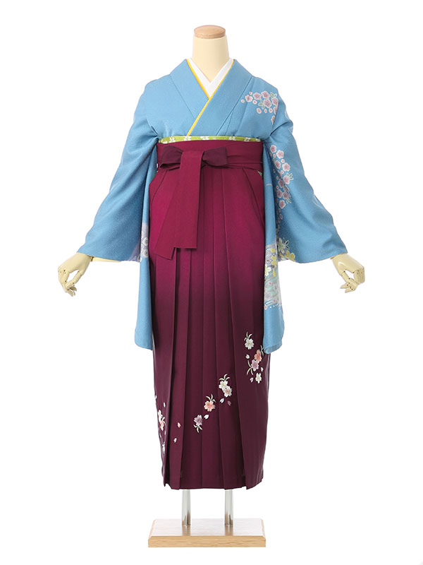 着物:水色地紋 袴:ワインぼかし袴 桜刺繍