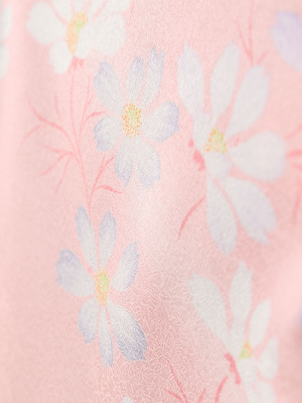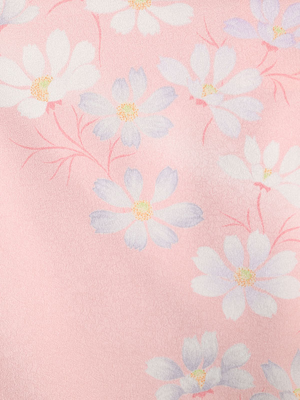 着物:ペールピンク地紋 コスモス 桜文様