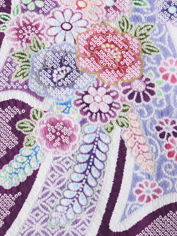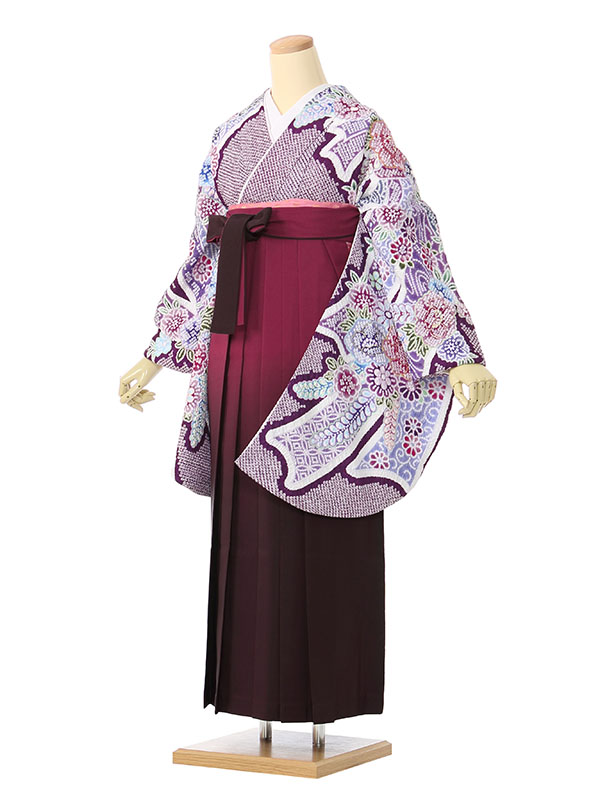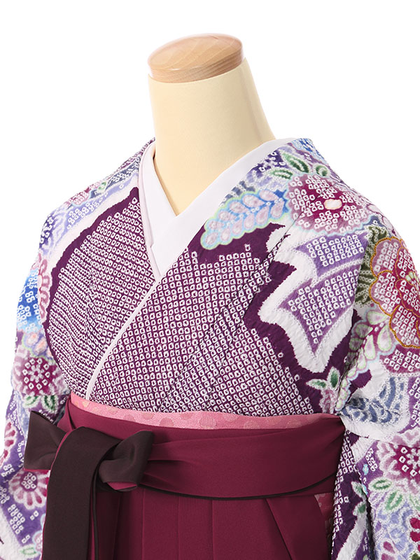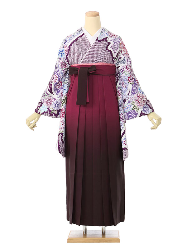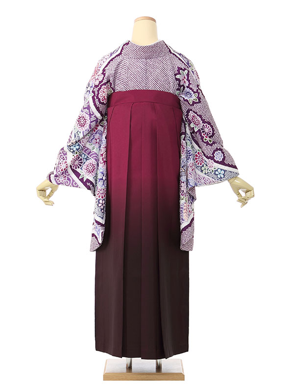 【着物色/柄】着物:紫地 疋田絞り調 熨斗に花 袴:ワインぼかし袴