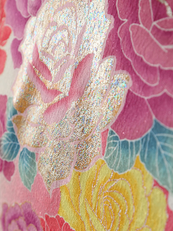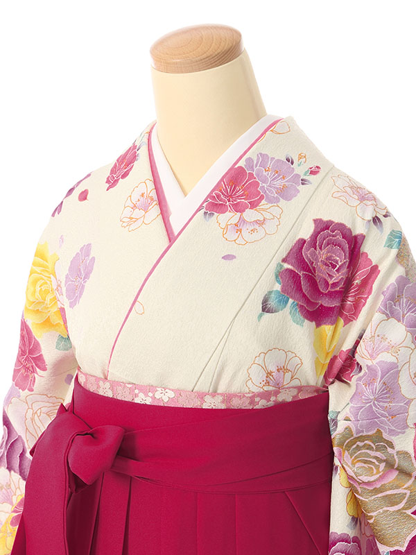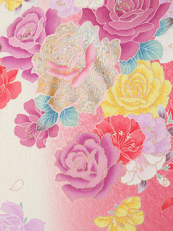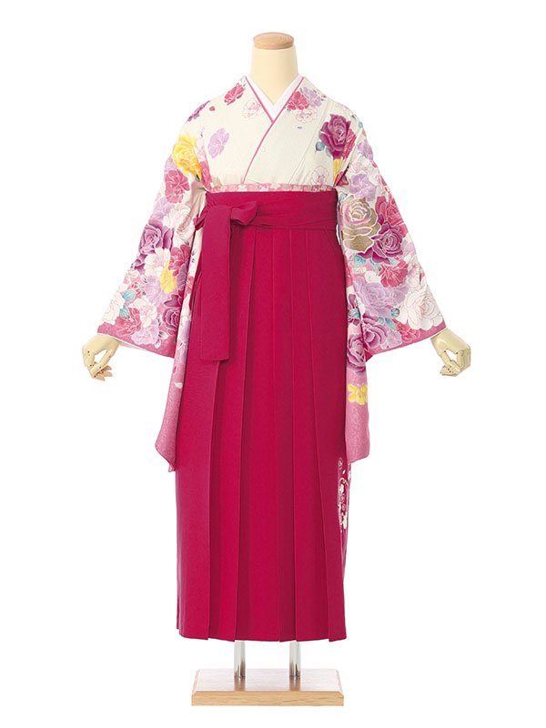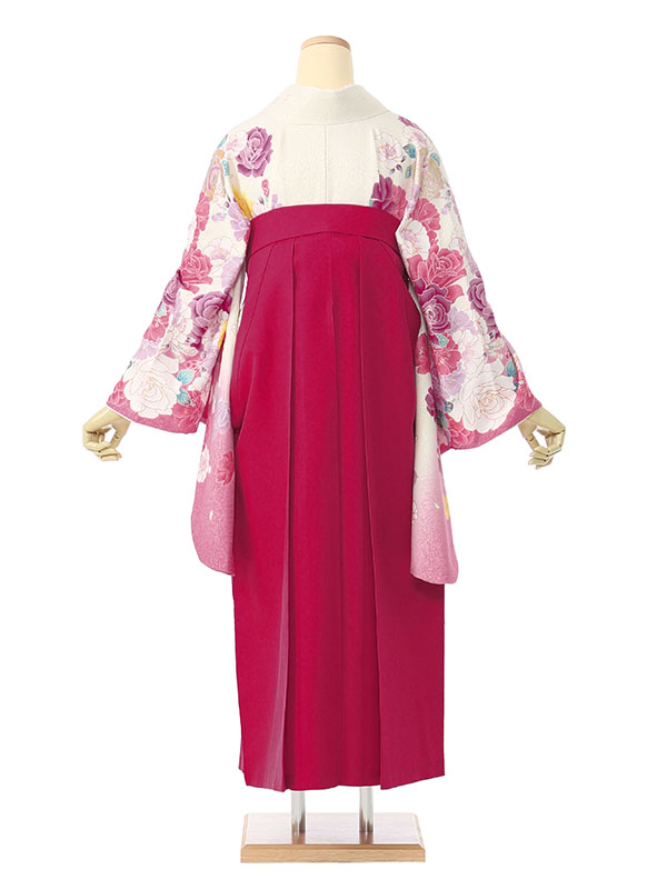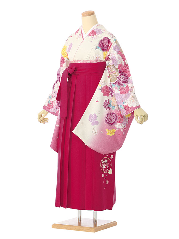 ■着物:白地 ピンクぼかし 薔薇と八重桜■袴:ローズピンク袴 刺繍入り 2.4