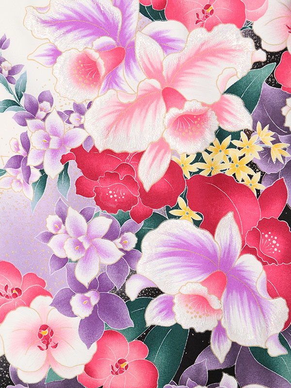 明るい白地に華やかな蘭尽くしR1096_H012-24-11