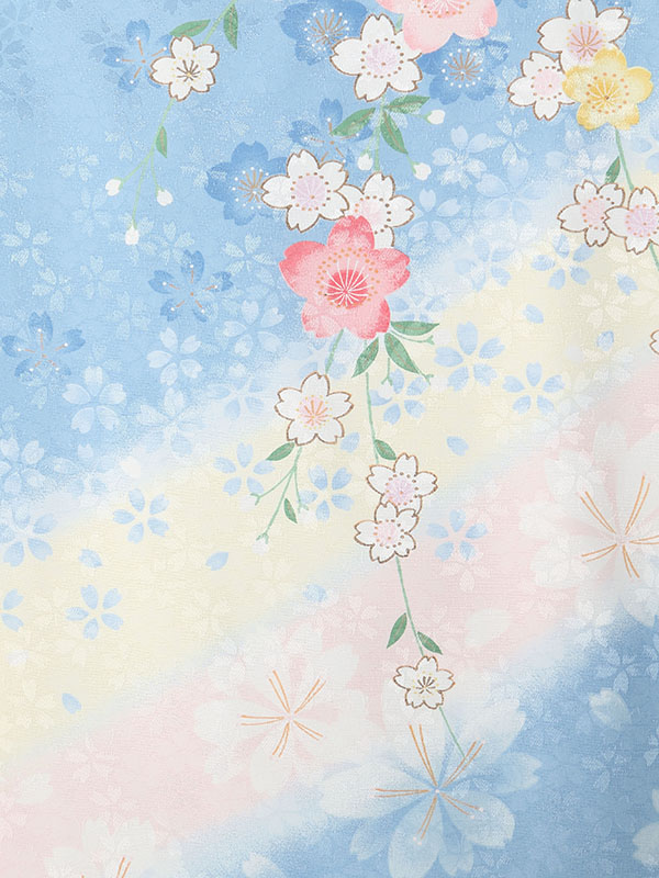 色/柄 着物:水色 桜地紋 枝垂れ桜 袴:紺袴 桜刺繍