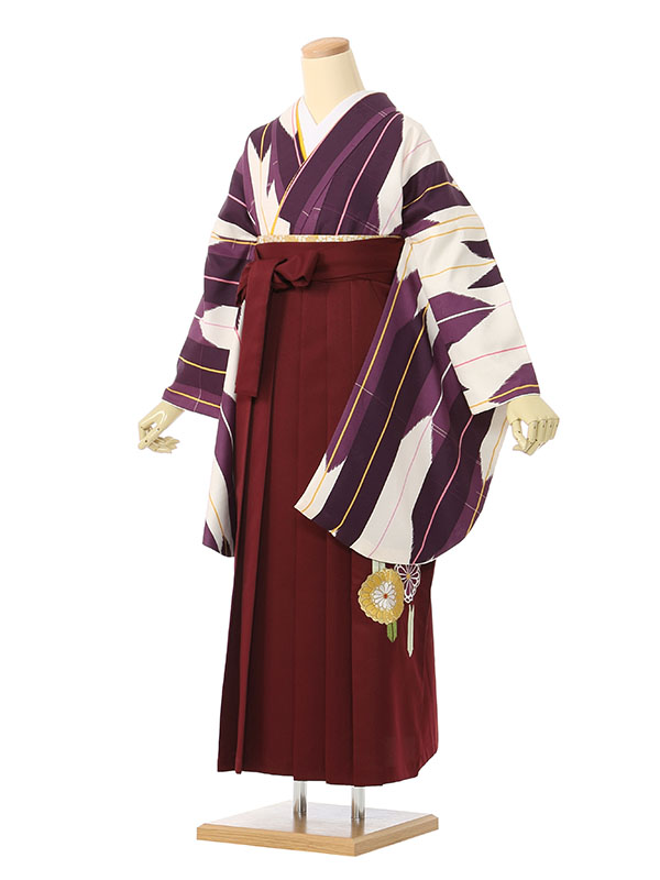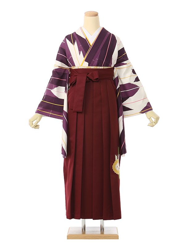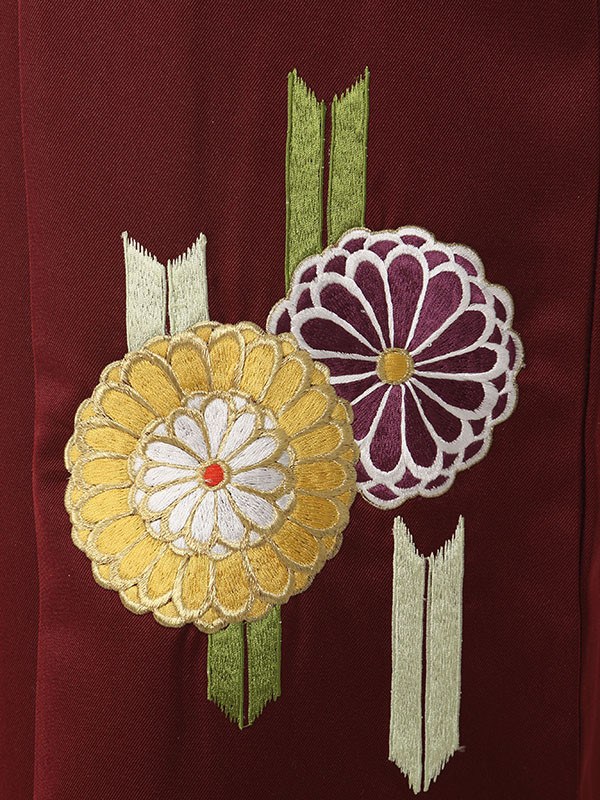 ■着物:白地 紫矢絣■袴:赤茶地矢絣 菊刺繍
