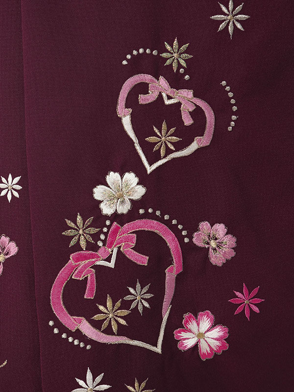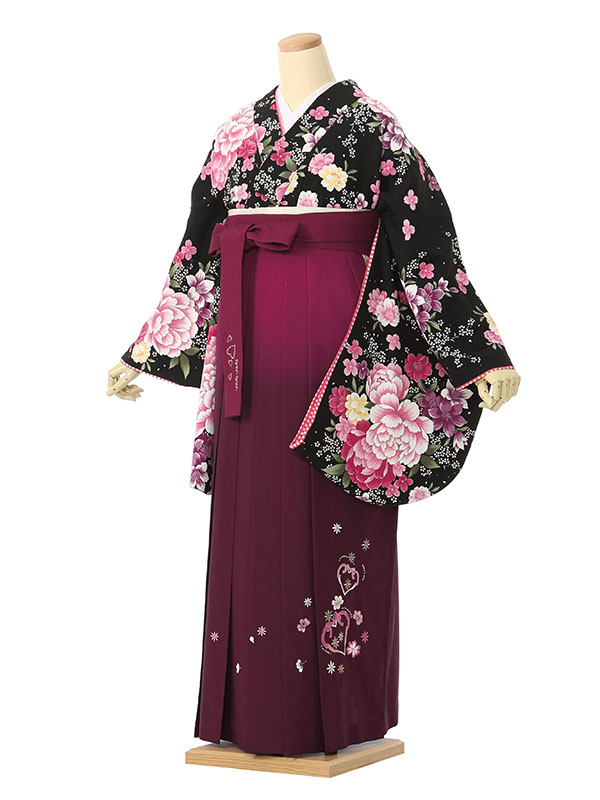 着物:牡丹 ききょう かすみ草 袴:紫ぼかし袴 ハート刺繍
