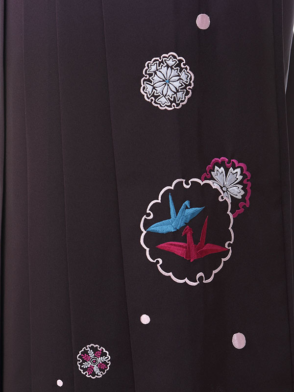 着物:茶と紫のボタンと竹 袴:ぼかし袴 おりづる 雪輪 ししゅう入