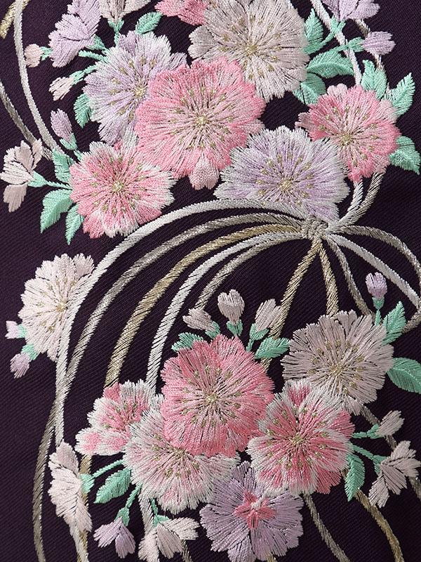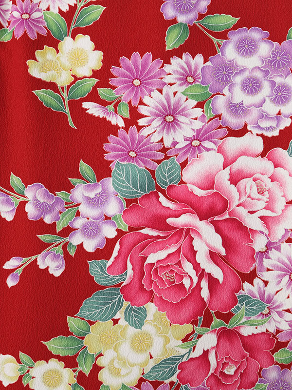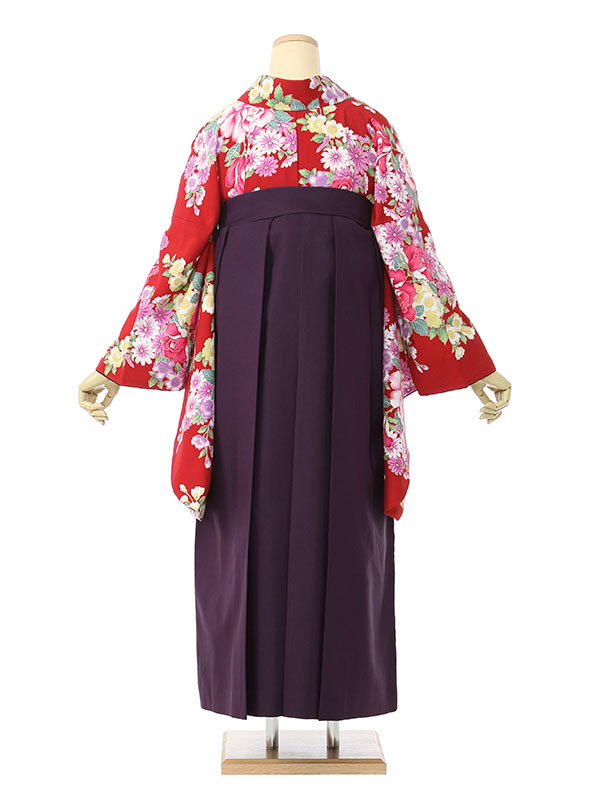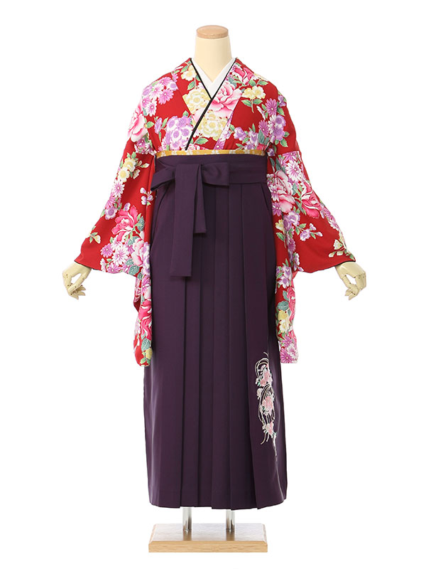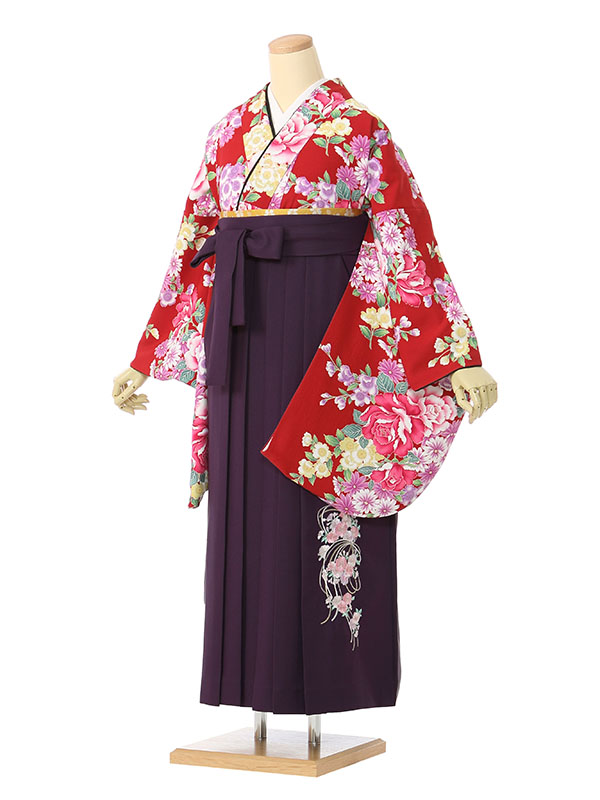 着物:赤地 桜 バラ 袴:紫地 桜刺繍