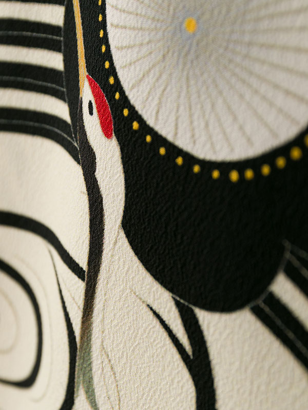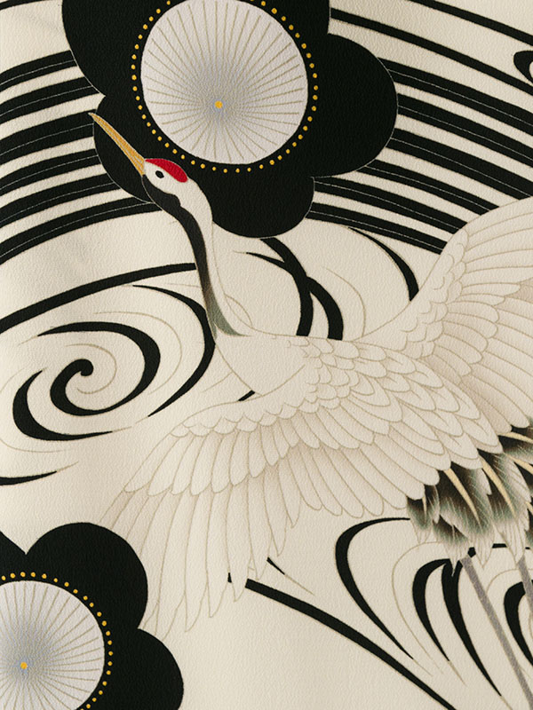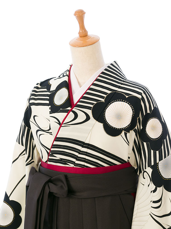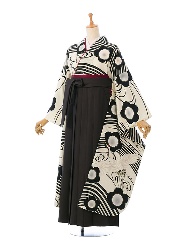 ■着物:白地 鶴梅 黒流水■袴:黒袴 95cm