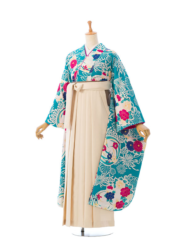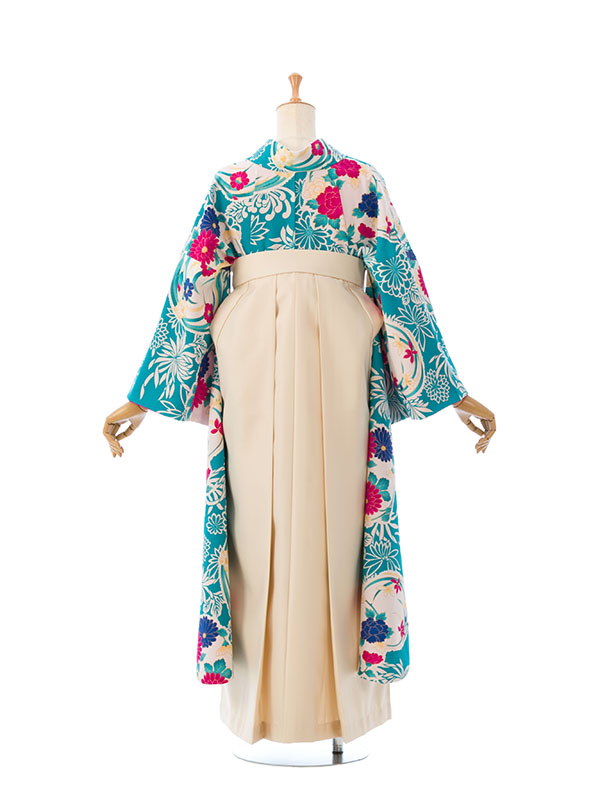 振袖袴|青系|0S0187 H|対応身長:158-163cm|サイズ:7-13号|岡重