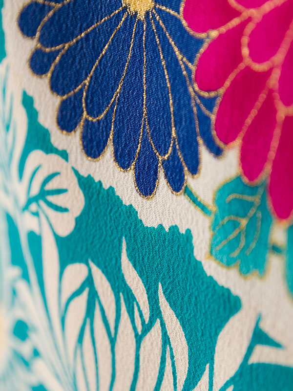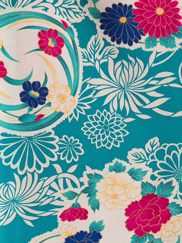 ■着物: 岡重 ターコイズ シルエット菊に花輪