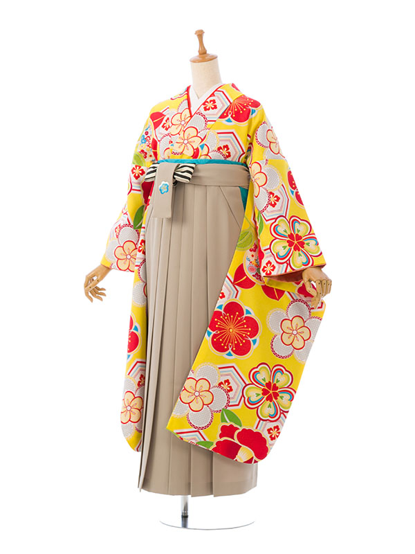 振袖袴|黄色系|椿|0S0102 H|対応身長:158-163cm|サイズ:7-13号|玉城