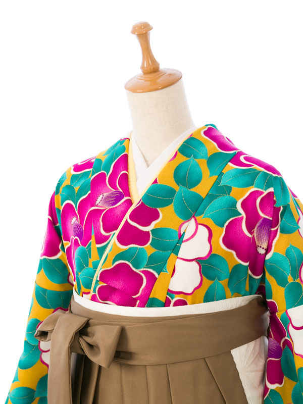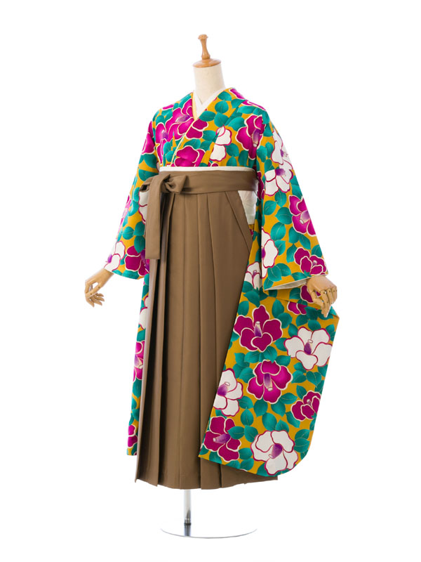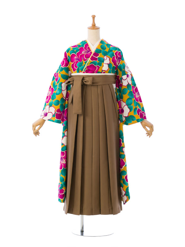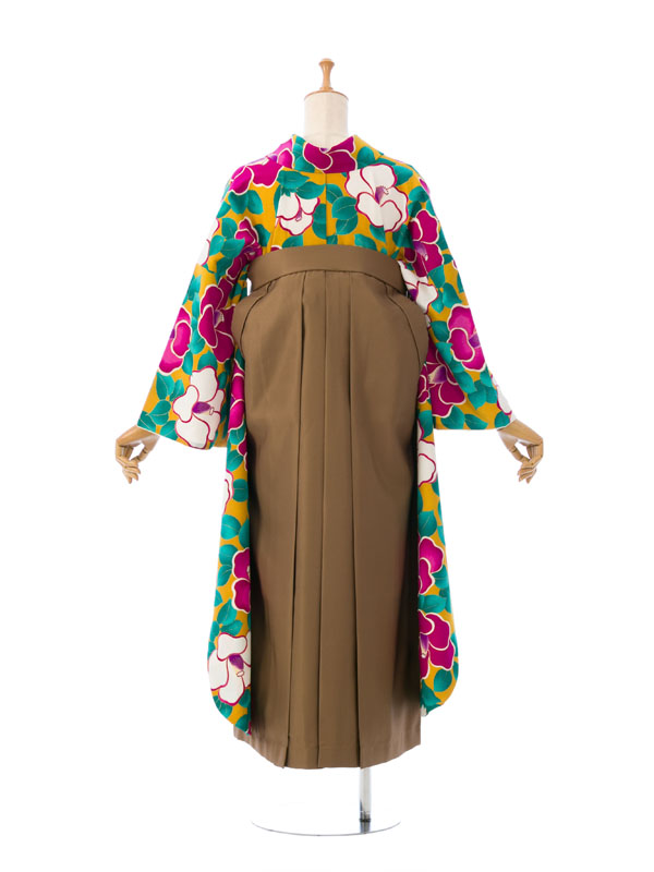 振袖袴|茶系|椿|0S0189 H|対応身長:153-158cm|サイズ:7-13号|岡重