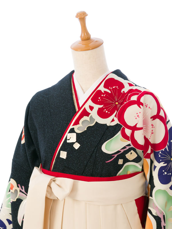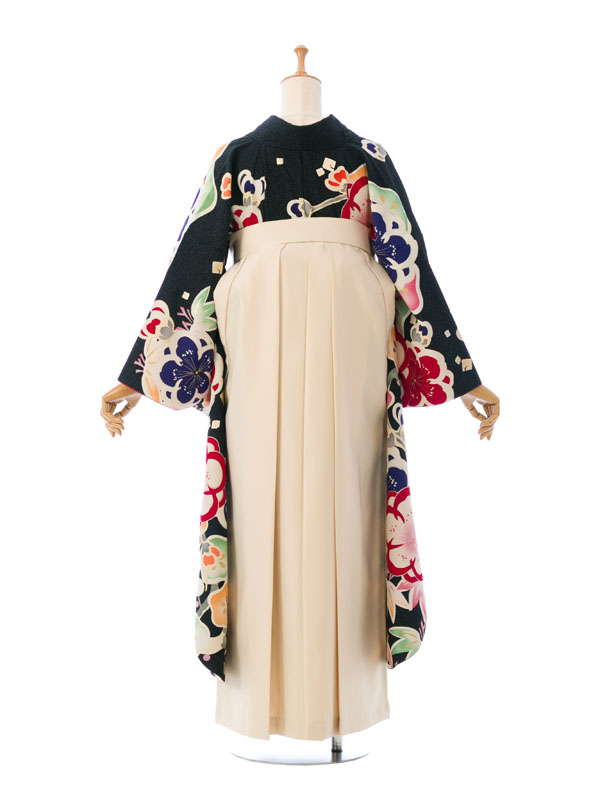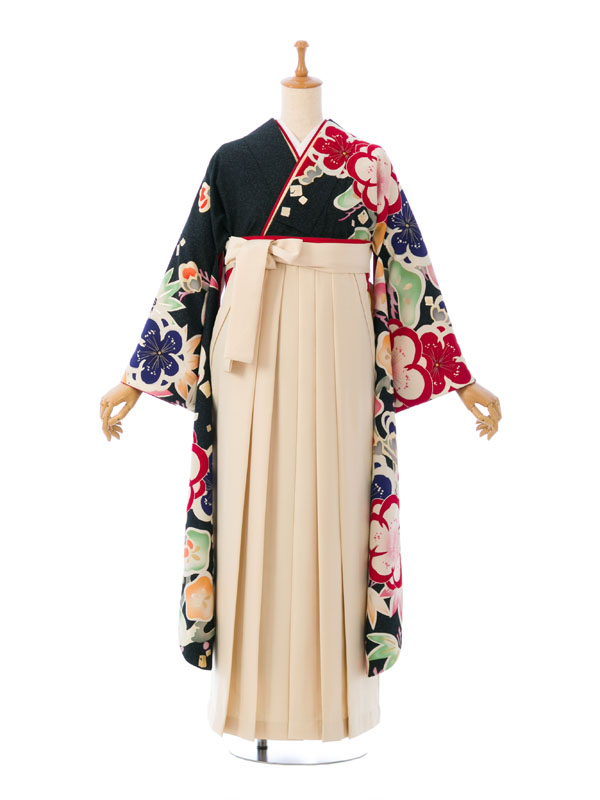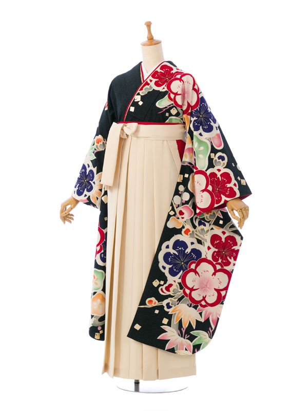 ■着物:黒 松竹梅■袴:アイボリー袴 99cm