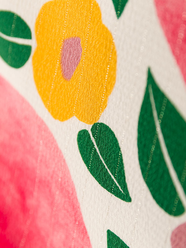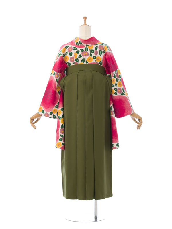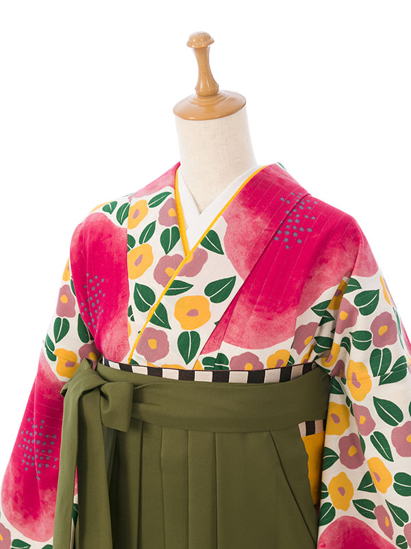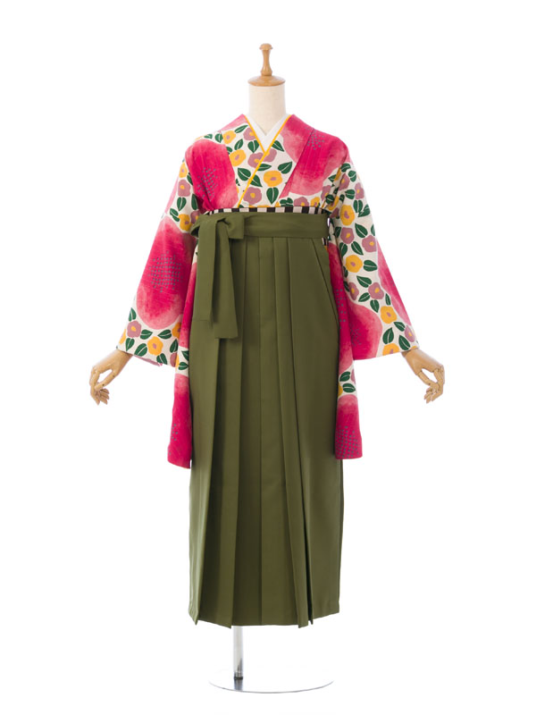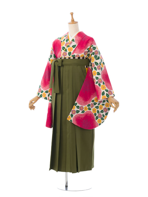 ■着物:クリーム地 ピンク大梅に椿■袴:抹茶袴 91cm