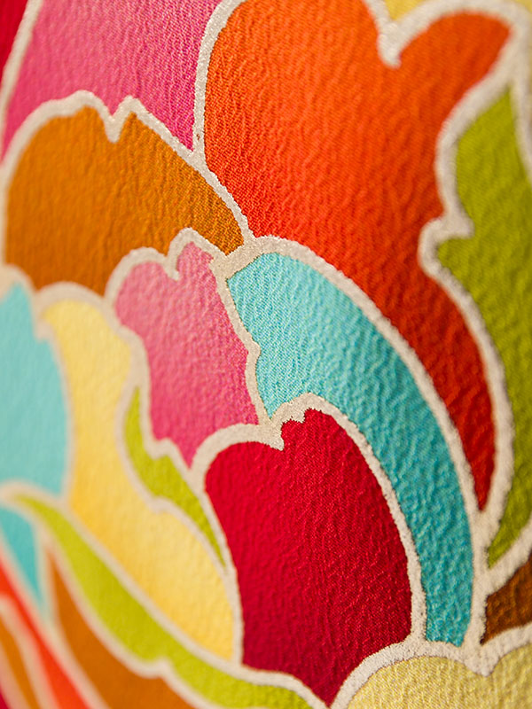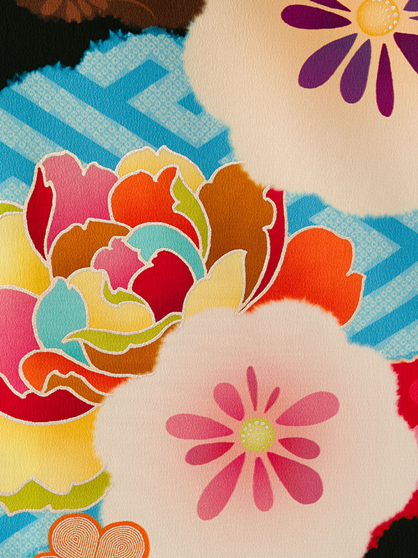 ■着物:紅一点 黒地 雲取に万寿菊 牡丹