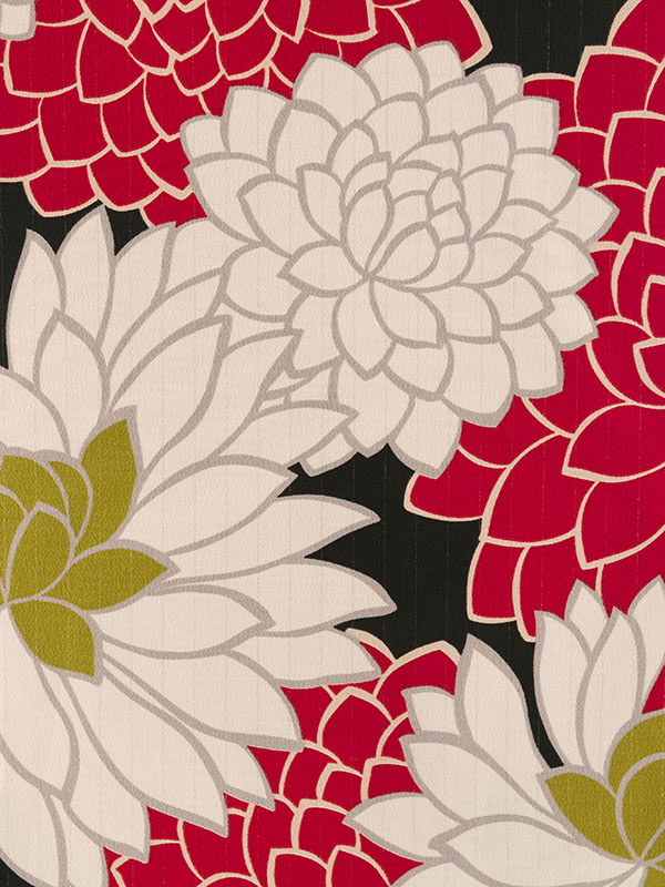 ■着物:和風館 黒地 赤白ダリヤ 菊文様