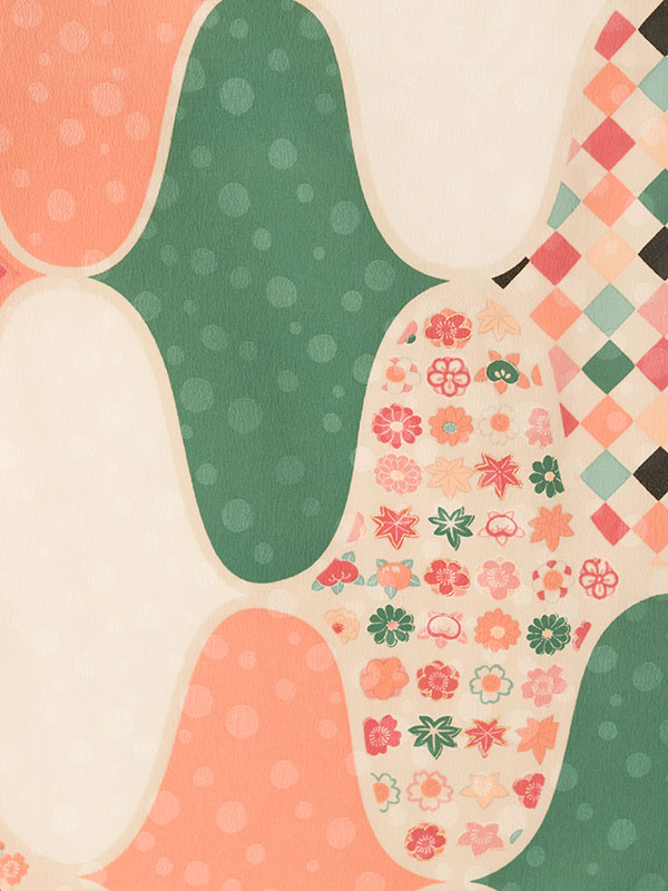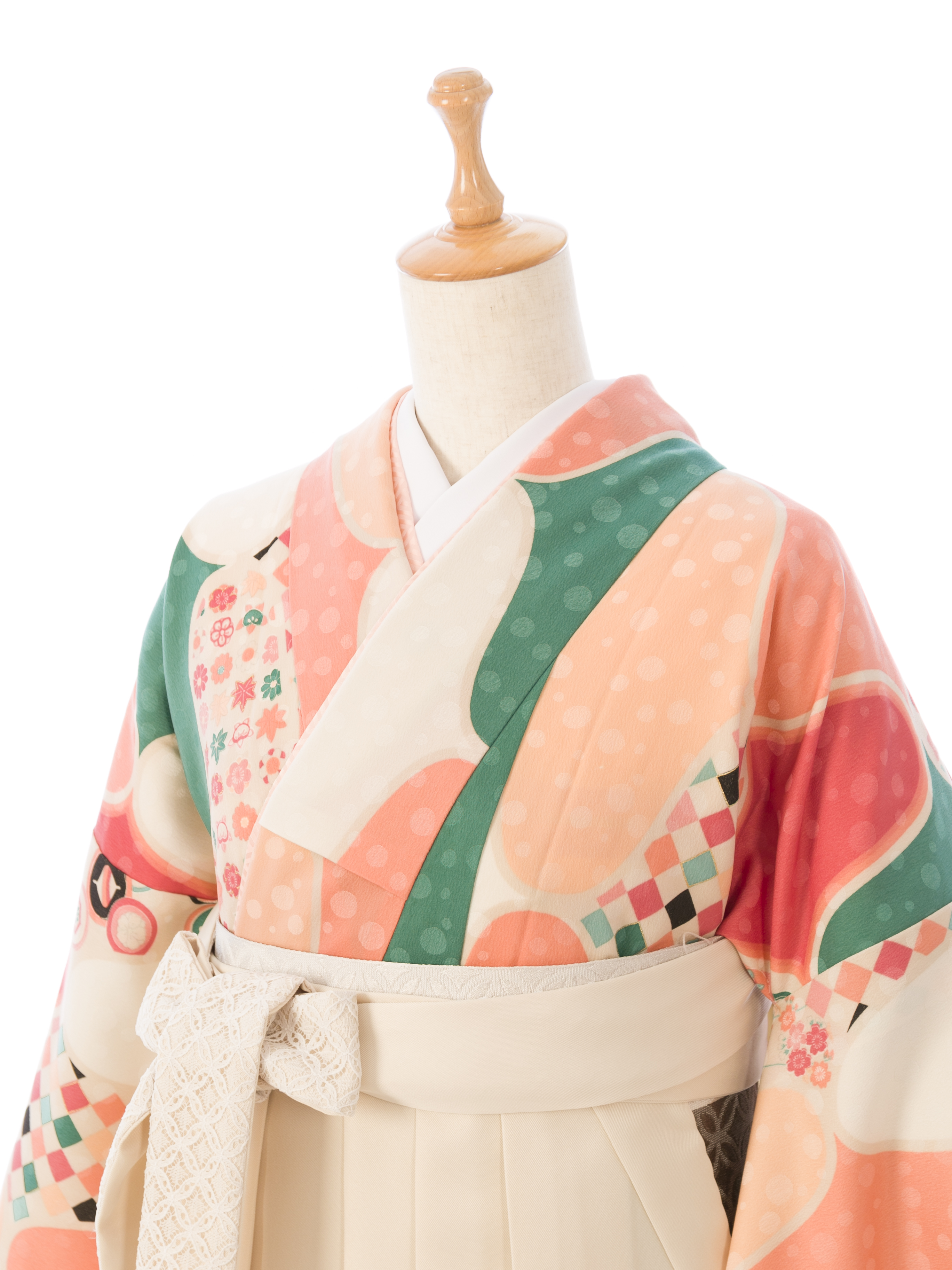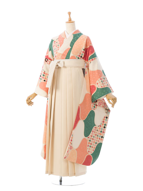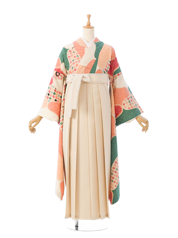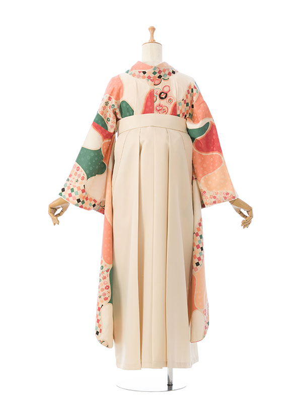 ■着物:モダンアンテナ ピンク系 多色■袴:ライトベージュ袴 紐レースつき 95cm