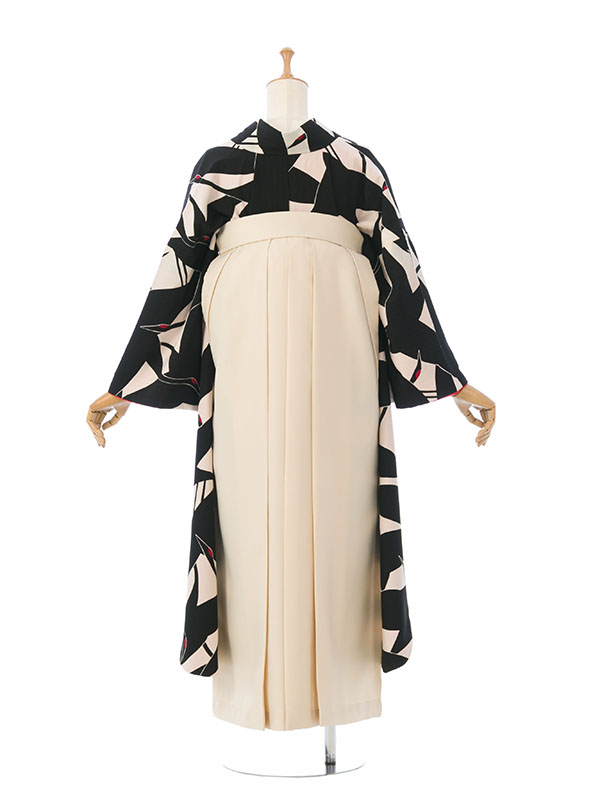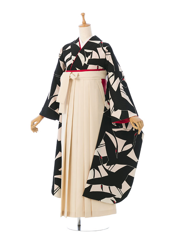 ■着物:白地 黒鶴■袴:アイボリー袴 95cm