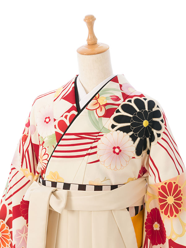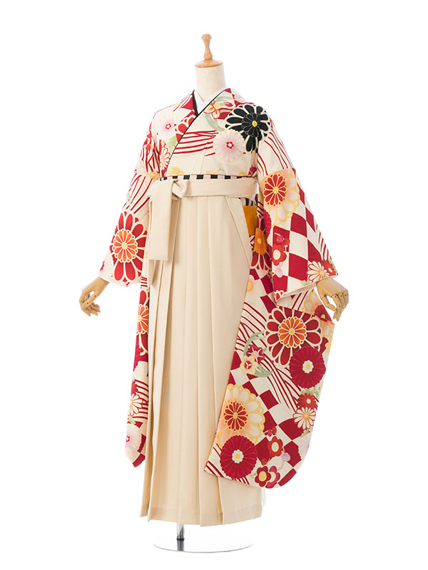 ■着物:和風館 クリーム/赤 フロッグ菊 梅