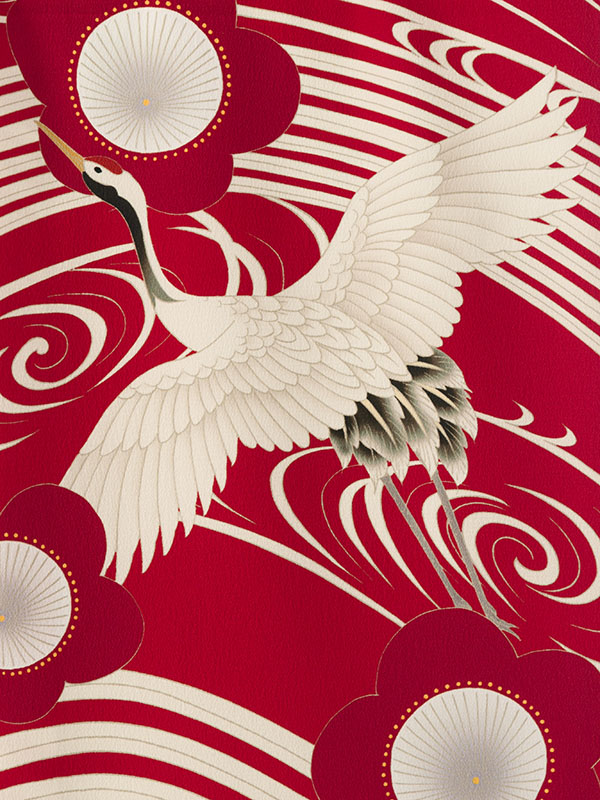 ■着物:きもの道楽 赤地 吉祥鶴梅 流水