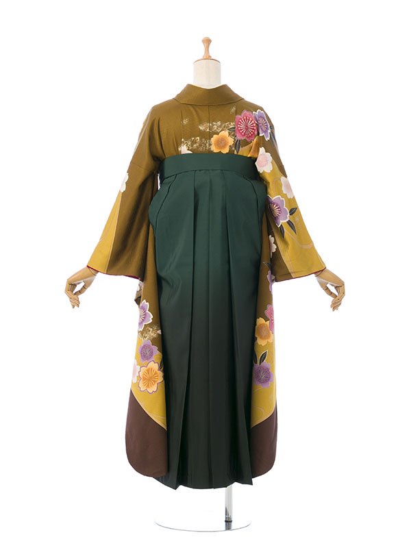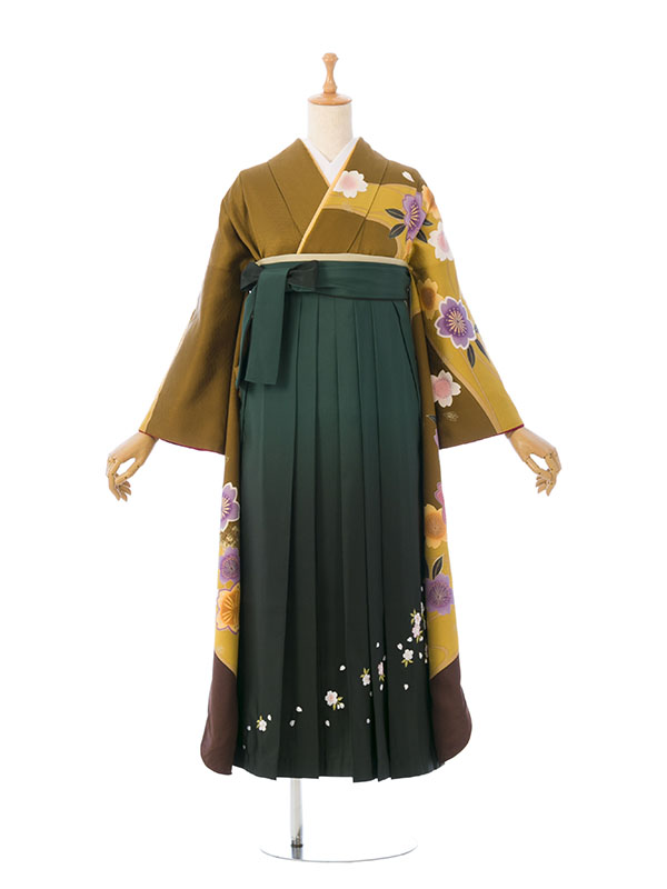 ■袴:グリーン袴 桜刺繍 91cm