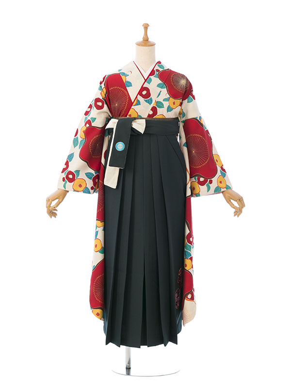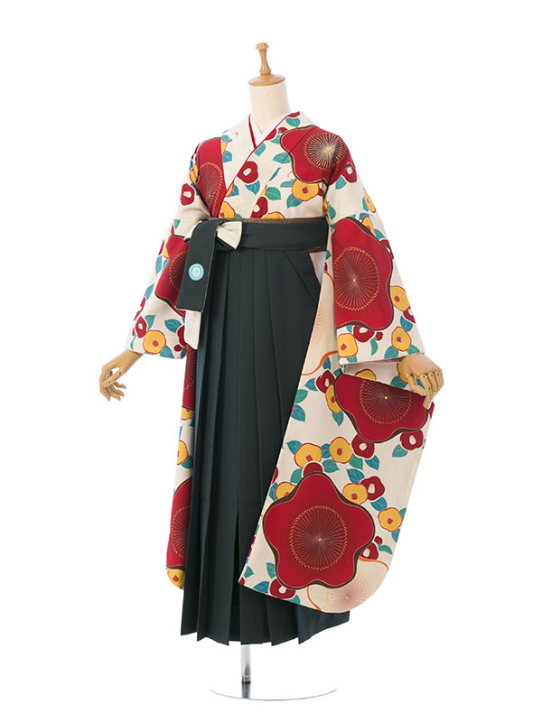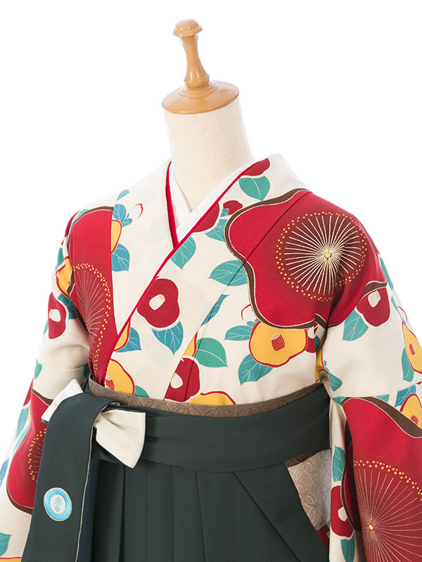 振袖袴|白系|椿|HACJ222 H|対応身長:153-158cm|サイズ:7-13号|和風館