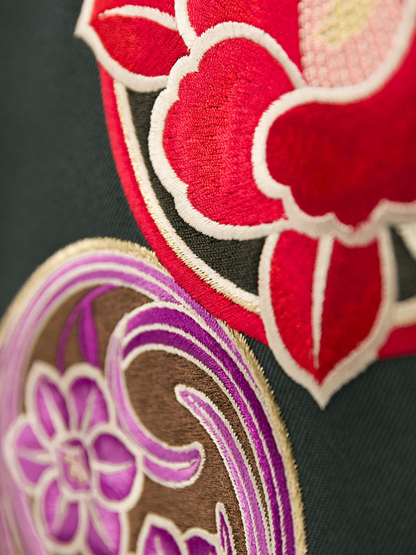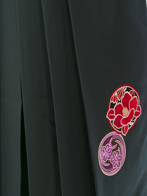 ■袴:グリーン袴 椿丸紋刺繍 91cm
