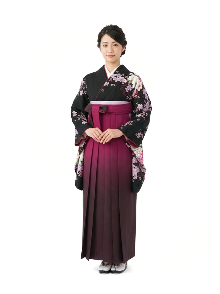 卒業袴|黒系|桜|R1087|対応身長:153-158cm|サイズ:7-13号