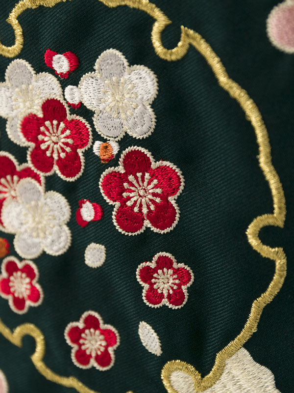 グリーン袴 雪輪に梅刺繍 91cm