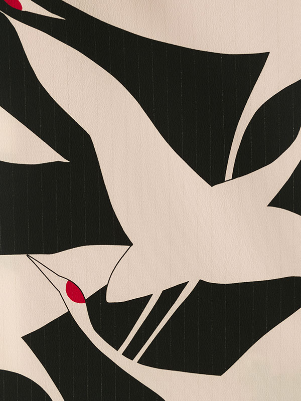 ■着物:白×黒地 鶴と矢羽根 片身がわり