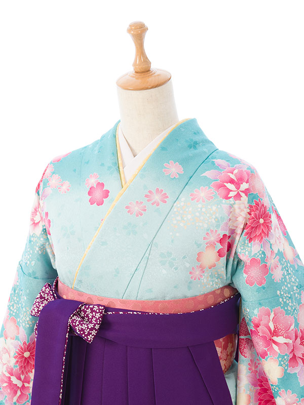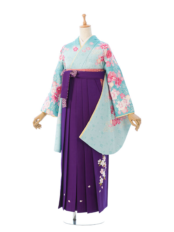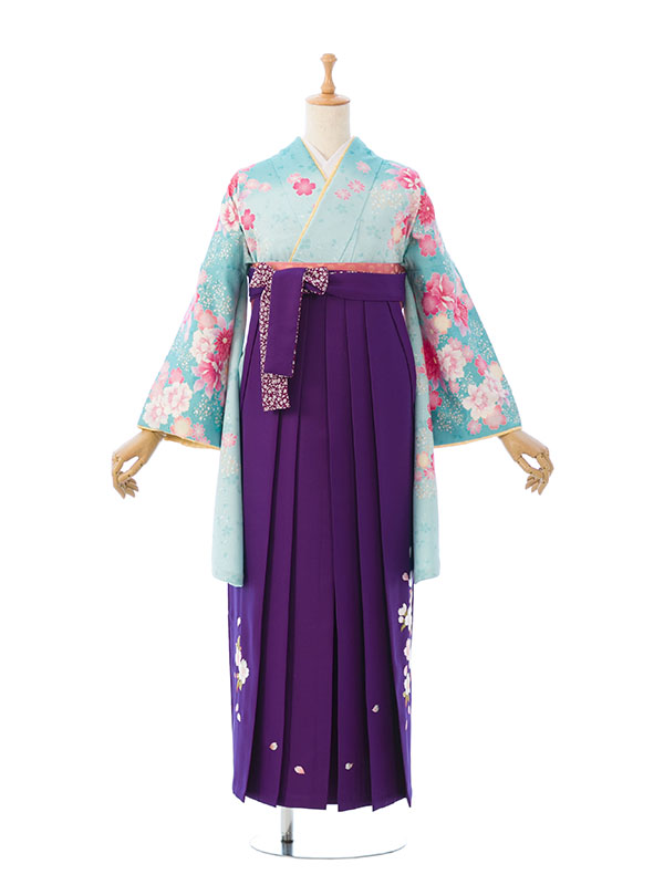 卒業袴|水色系|桜|R1111|対応身長:155-160cm|サイズ:7-13号
