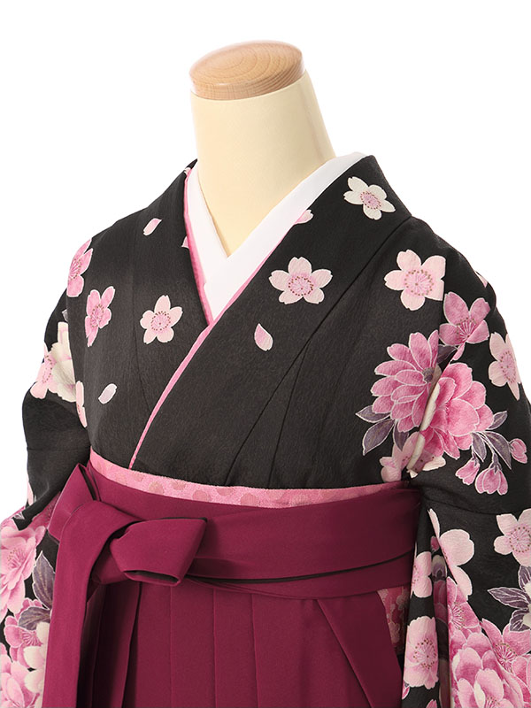 卒業袴|黒系|桜|R1153|対応身長:153-158cm|サイズ:7-13号