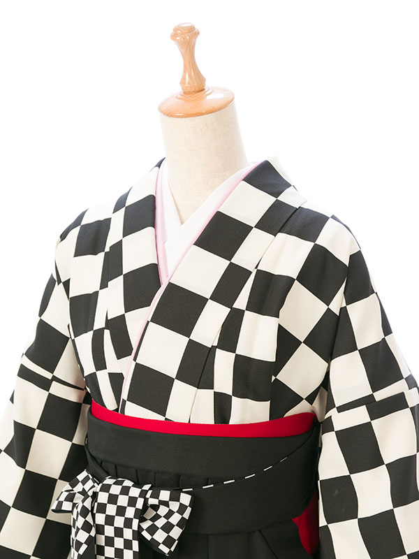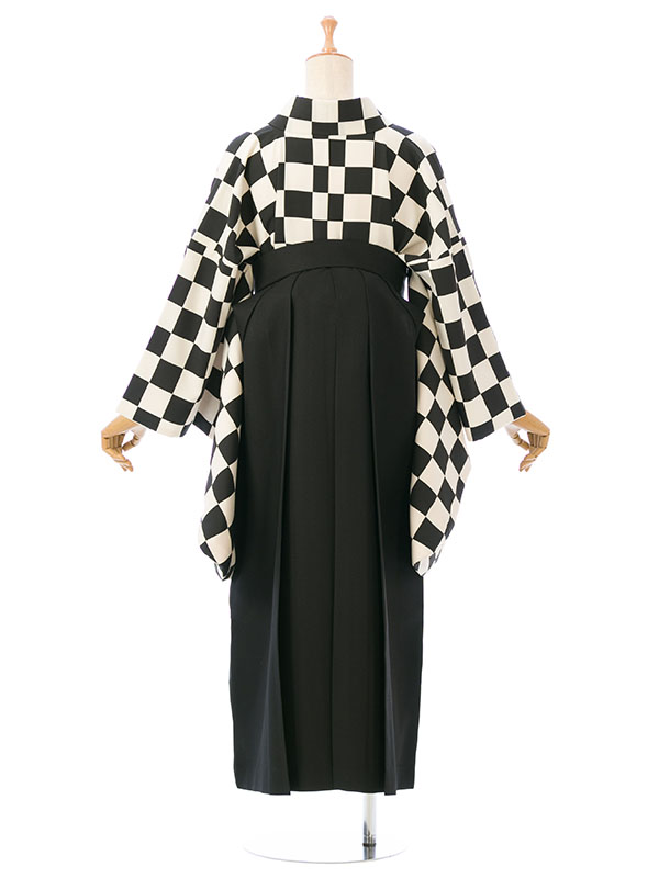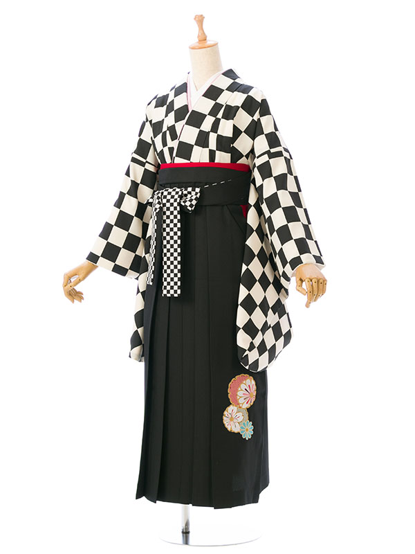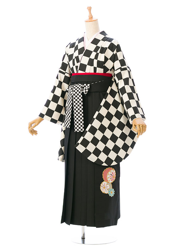 ■着物:白×黒 市松■袴:黒袴 菊刺繍 紐市松 2.3