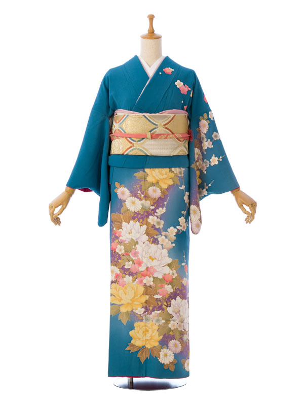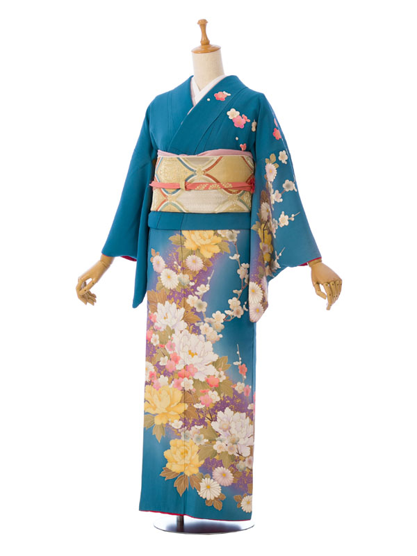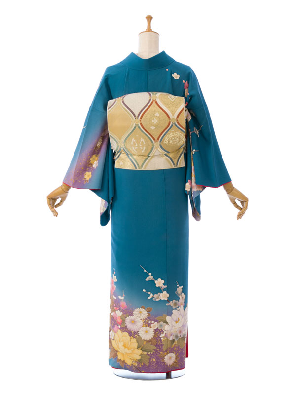 ■色/柄:ブルー 牡丹に桜梅