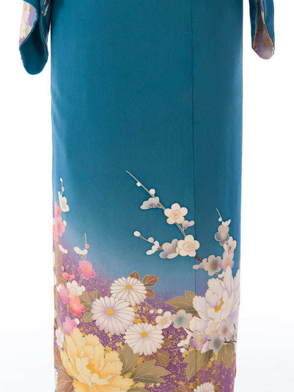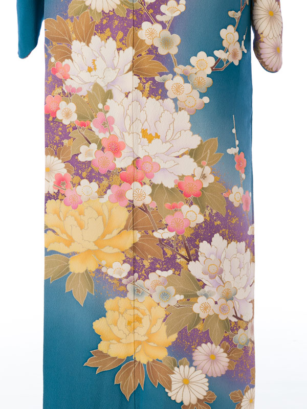 ブルー地 牡丹に桜梅