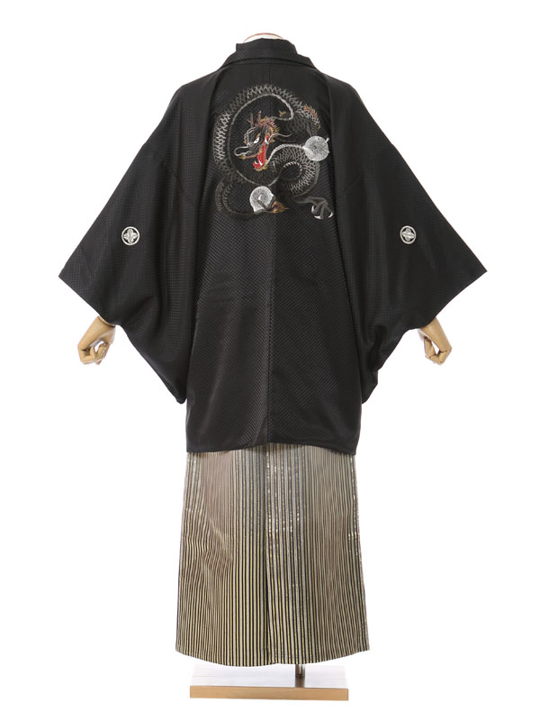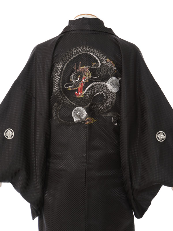 羽織/着物: 黒地龍刺繍