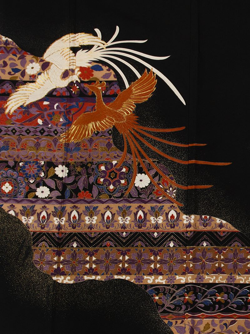 ■色/柄 三羽鳳凰紫の花
