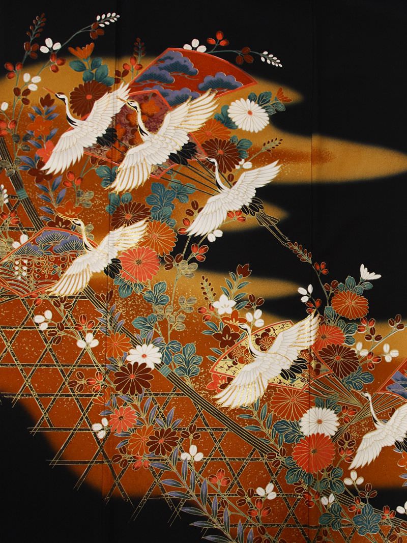 ※「五三桐」の紋が背紋1つ、前胸紋2つ、後ろ袖紋2つの5つ紋で入っております。