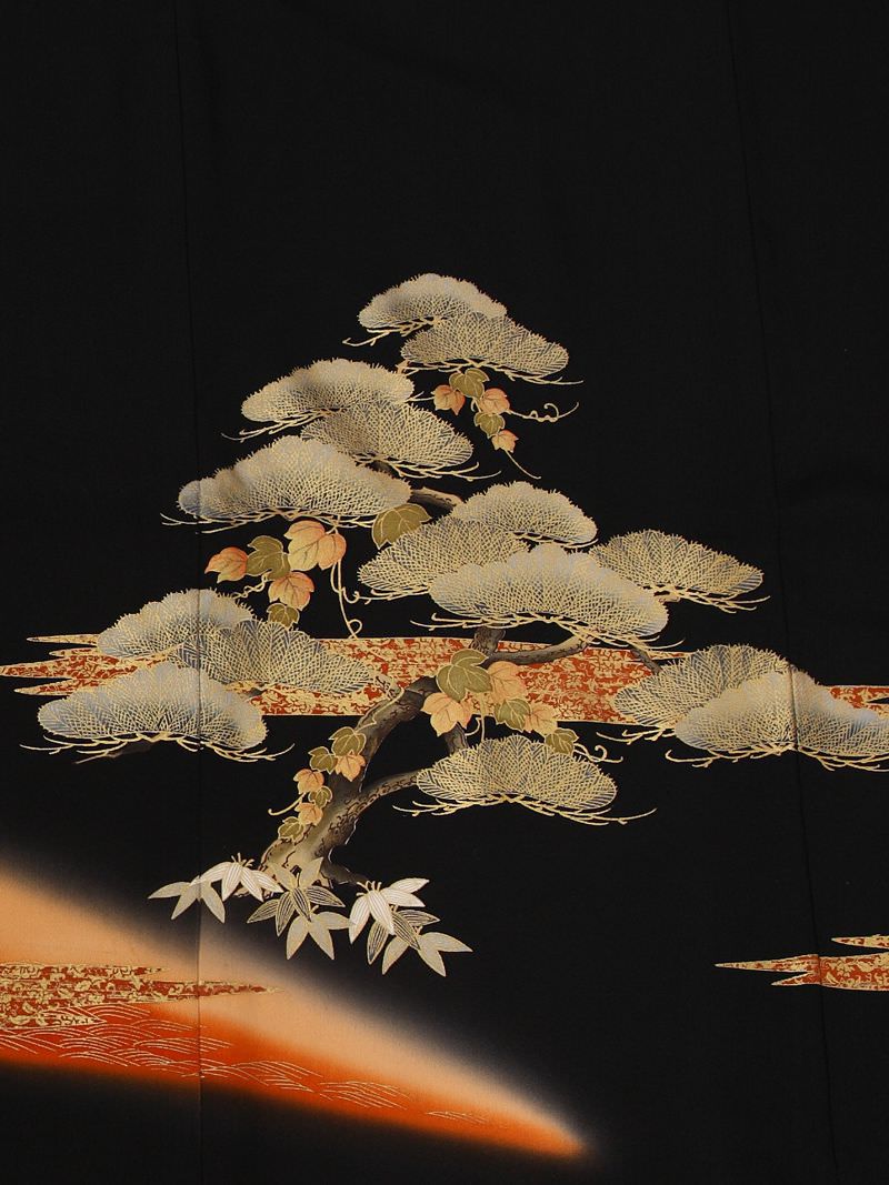 茶ぼかし霞老松藤花