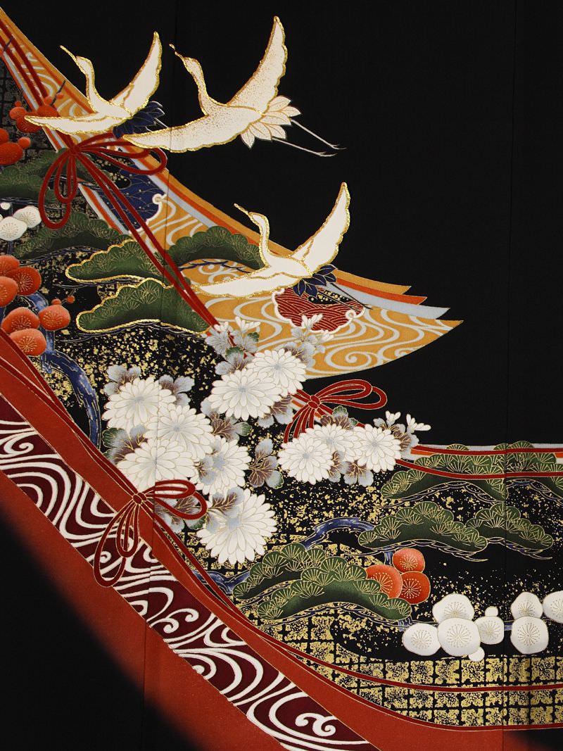 ※「五三桐」の紋が背紋1つ、前胸紋2つ、後ろ袖紋2つの5つ紋で入っております。
