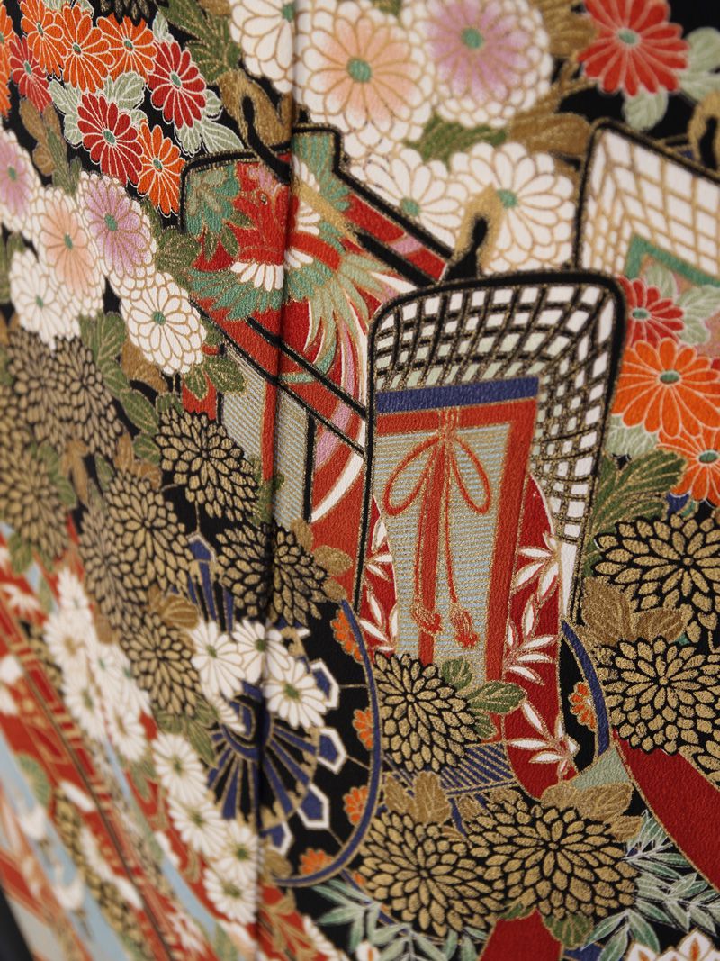 黒留袖 熨斗に花車