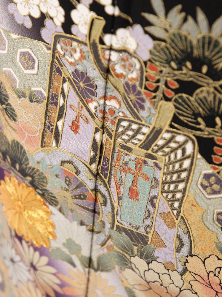 ※「五三桐」の紋が背紋1つ、前胸紋2つ、後ろ袖紋2つの5つ紋で入っております。